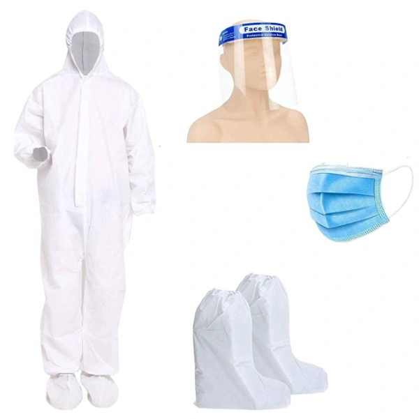 - Package : Coverall PPE Suit and Shoes Cover,Face Shield , 3 Ply Mask